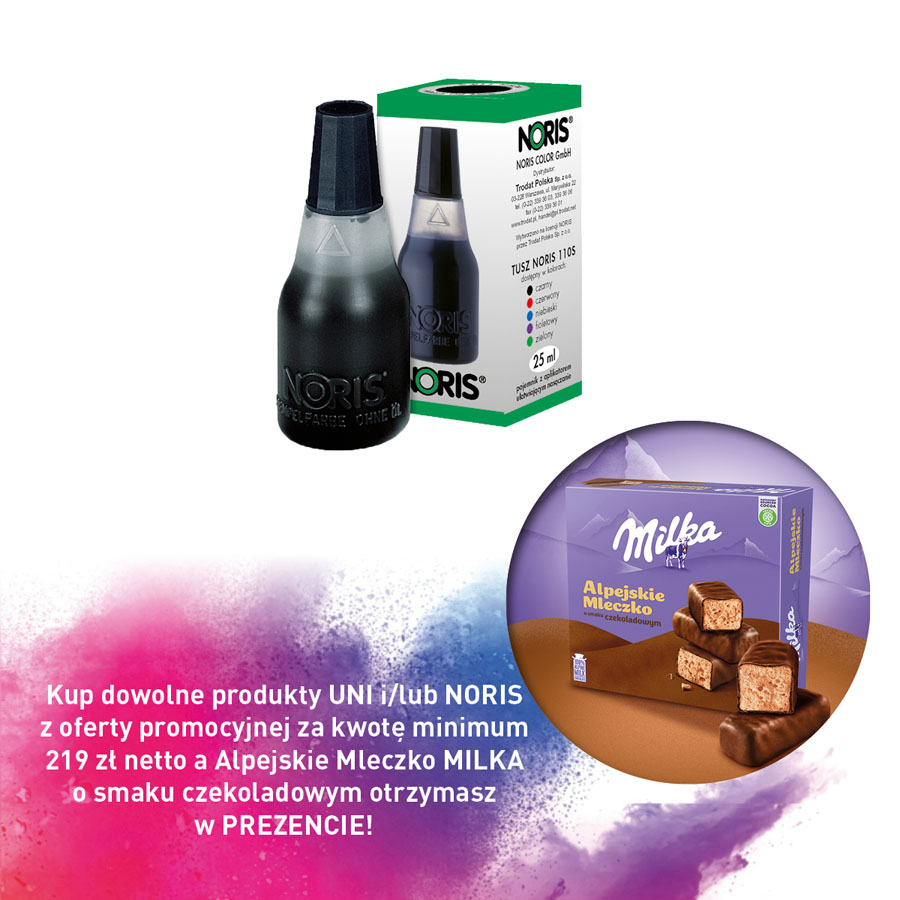 Kup dowolne produkty UNI i/lub NORIS z oferty promocyjnej za kwotę minimum 219 zł netto a Alpejskie Mleczko MILKA o smaku czekoladowym otrzymasz w PREZENCIE!