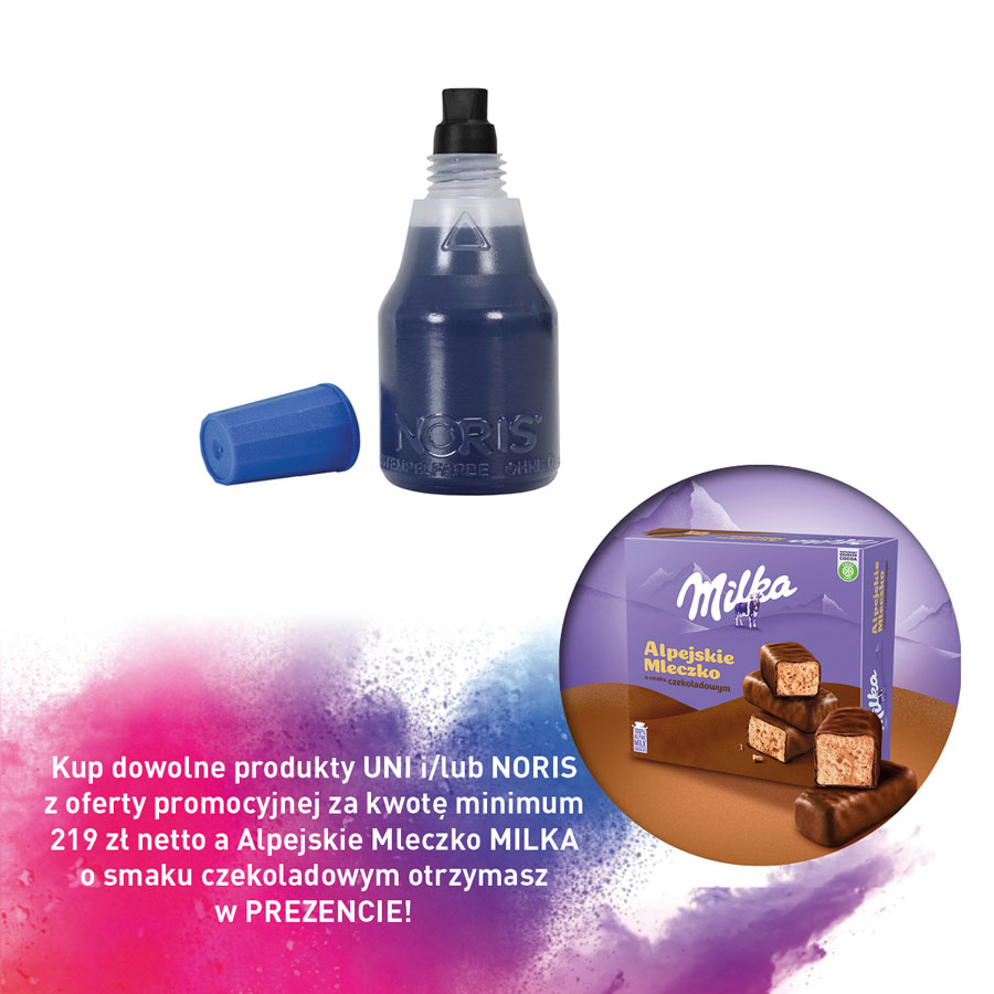 jm.: szt Kup dowolne produkty UNI i/lub NORIS z oferty promocyjnej za kwotę minimum 219 zł netto a Alpejskie Mleczko MILKA o smaku czekoladowym otrzymasz w PREZENCIE!