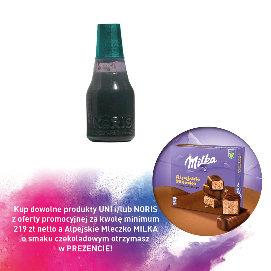 jm.: szt Kup dowolne produkty UNI i/lub NORIS z oferty promocyjnej za kwotę minimum 219 zł netto a Alpejskie Mleczko MILKA o smaku czekoladowym otrzymasz w PREZENCIE!