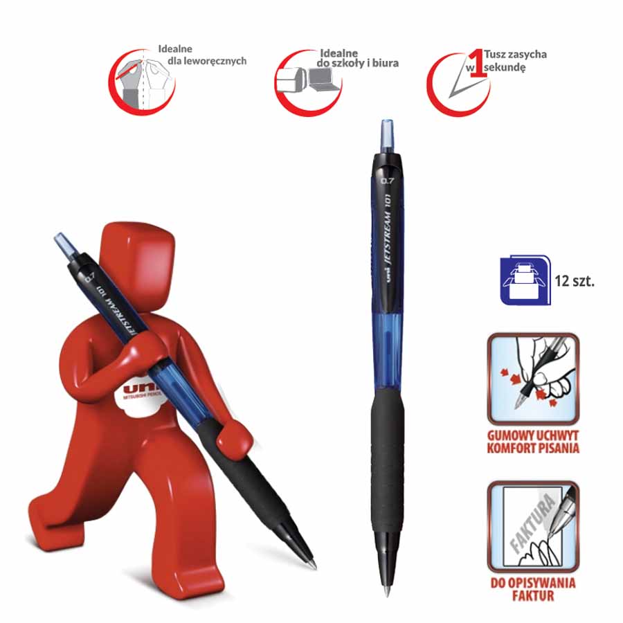 - wygodny gumowy uchwyt, który pozwala pisać przez dłuższy czas bez wysiłku