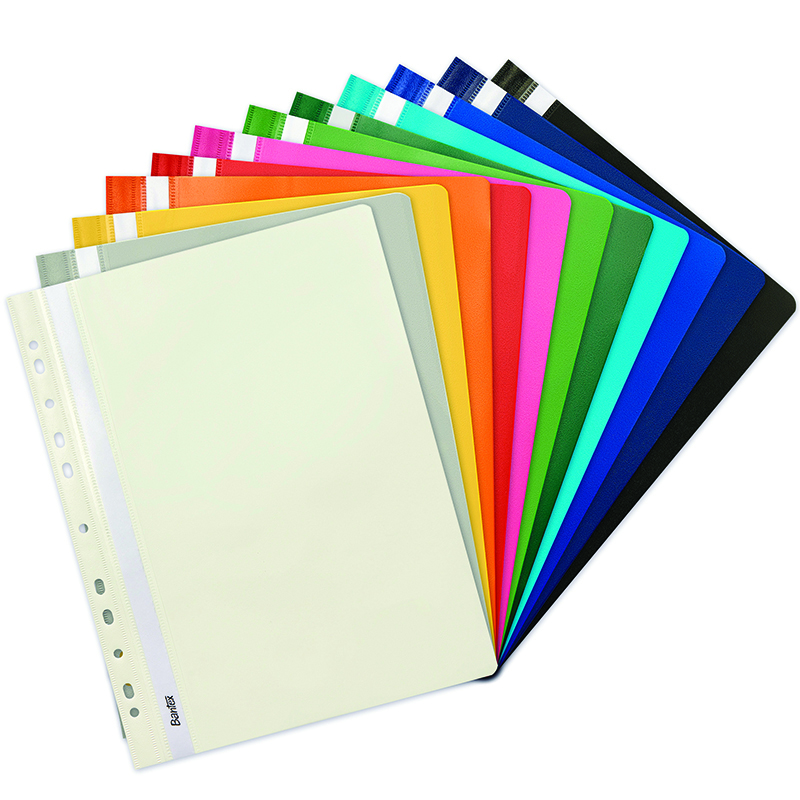 Skoroszyt twardy A4 Biurfol wykonany jest z wytrzymałej folii PVC, która zapewnia doskonałą ochronę dokumentów przed uszkodzeniami. Przód jest przezroczysty, co umożliwia szybki podgląd zawartości, natomiast tył jest twardy i kolorowy, co dodaje estetyki i elegancji.