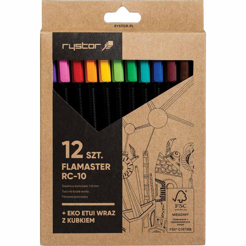 Wyposażony w fibrową końcówkę piszącą o grubości 1,0 mm, flamaster Rystor RC 10 jest odporny na rozwarstwianie, co zapewnia precyzyjne i wyraziste linie. Doskonały do pisania, rysowania i podkreślania.