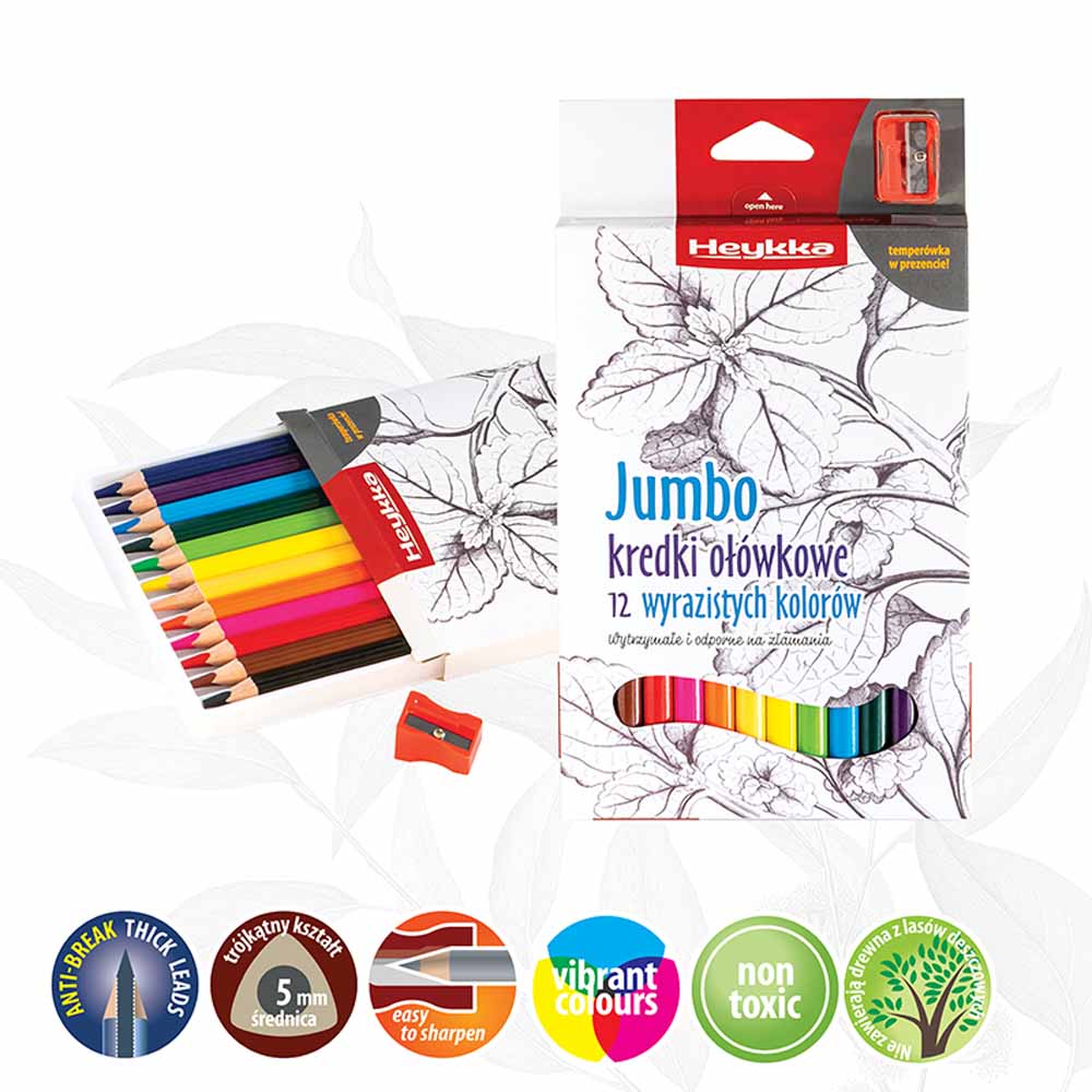 Grube kredki o ergonomicznym, trójkątnym przekroju zostały zaprojektowane specjalnie dla dzieci, aby zapewnić wygodny chwyt i naturalną kontrolę nad rysowaniem. Idealnie dopasowane do małych dłoni, wspierają rozwój zdolności manualnych i kreatywności.