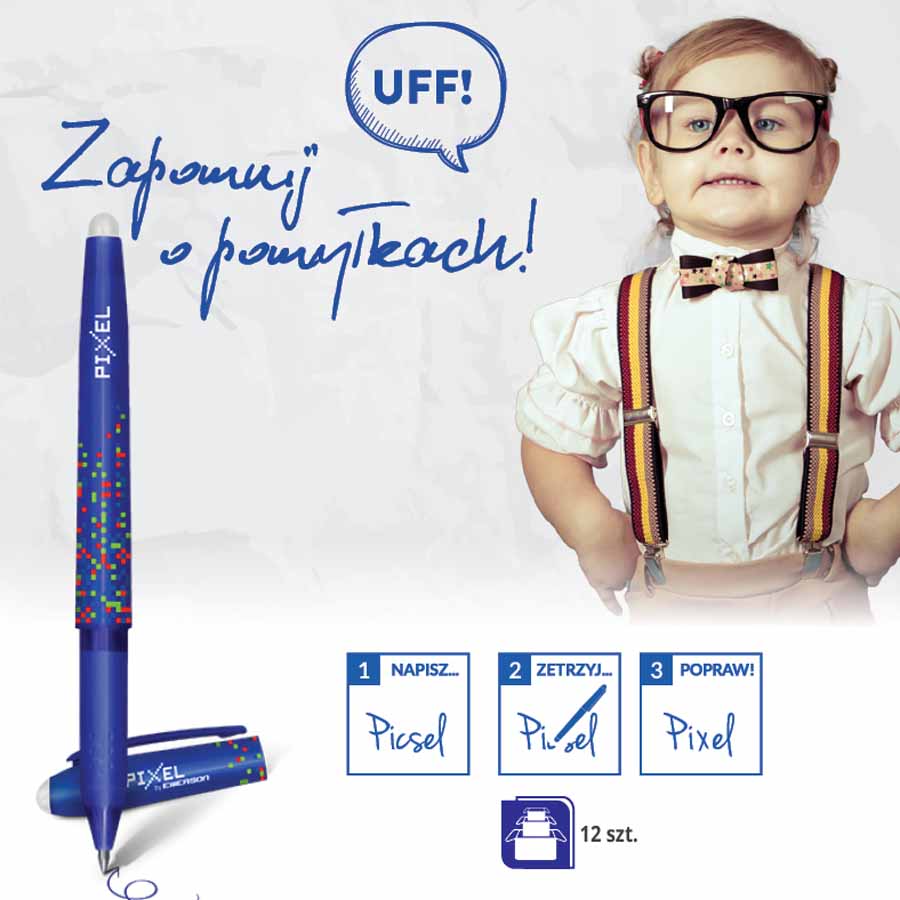 - wymazywanie za pomocą gumki na końcu długopisu lub zatyczce (tusz znika także po podgrzaniu kartki)