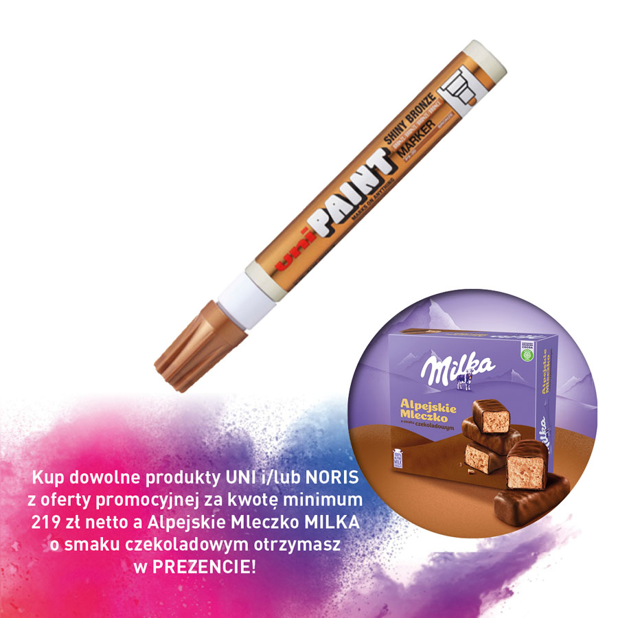 jm.: szt Kup dowolne produkty UNI i/lub NORIS z oferty promocyjnej za kwotę minimum 219 zł netto a Alpejskie Mleczko MILKA o smaku czekoladowym otrzymasz w PREZENCIE!