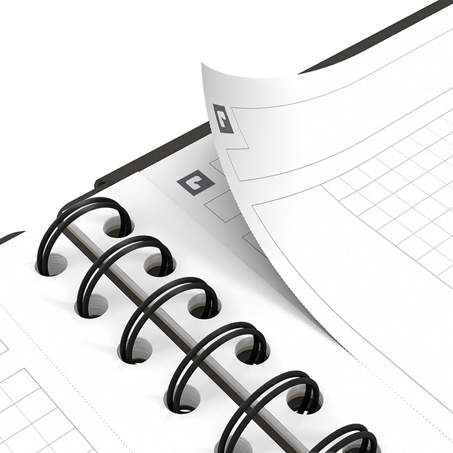 - podwójna spirala pozwala na otwarcie notatnika na 360°