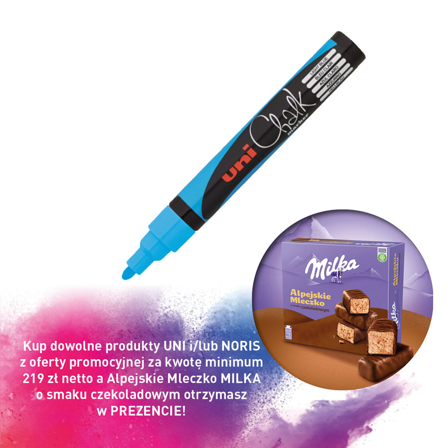 jm.: szt Kup dowolne produkty UNI i/lub NORIS z oferty promocyjnej za kwotę minimum 219 zł netto a Alpejskie Mleczko MILKA o smaku czekoladowym otrzymasz w PREZENCIE!