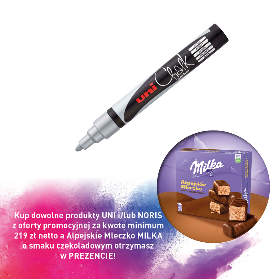 jm.: szt Kup dowolne produkty UNI i/lub NORIS z oferty promocyjnej za kwotę minimum 219 zł netto a Alpejskie Mleczko MILKA o smaku czekoladowym otrzymasz w PREZENCIE!