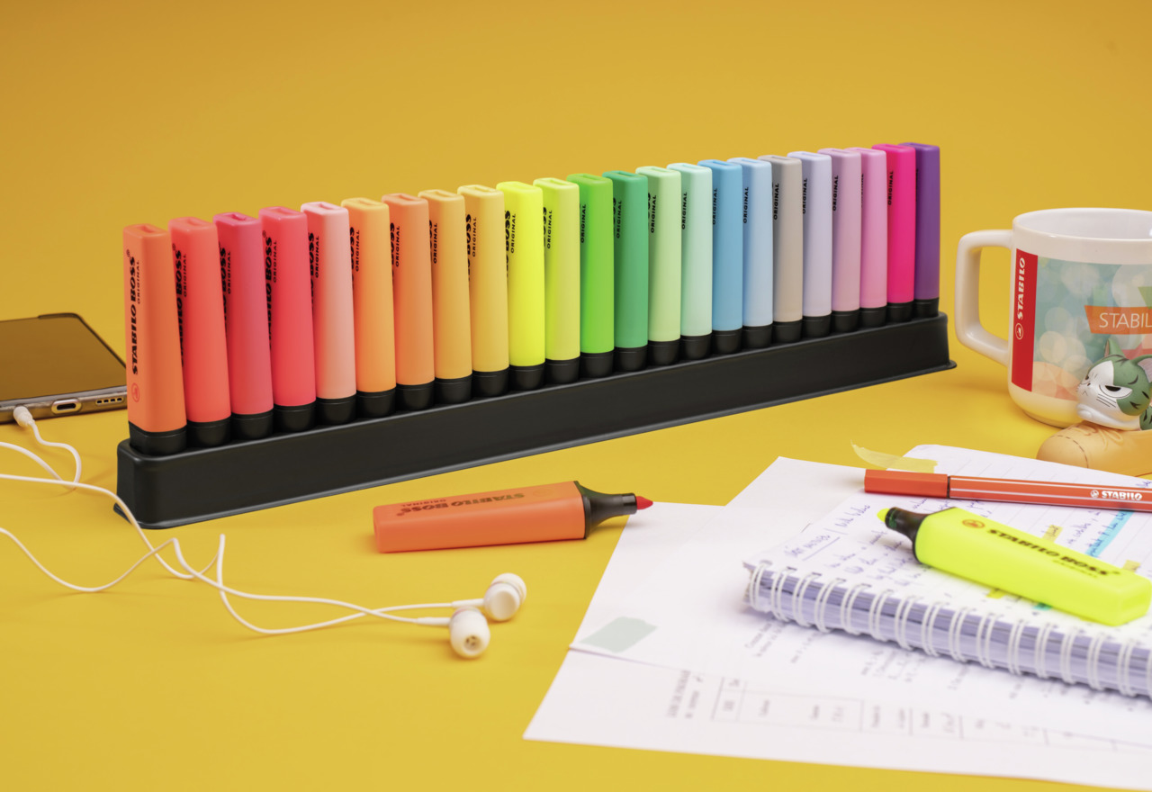 Zakreślacze STABILO BOSS ORIGINAL to legenda wśród zakreślaczy, cieszące się niesłabnącą popularnością od ponad pięciu dekad. Dostępne w zestawie dwudziestu trzech intensywnych kolorów, umożliwiają tworzenie barwnych, wyrazistych notatek.