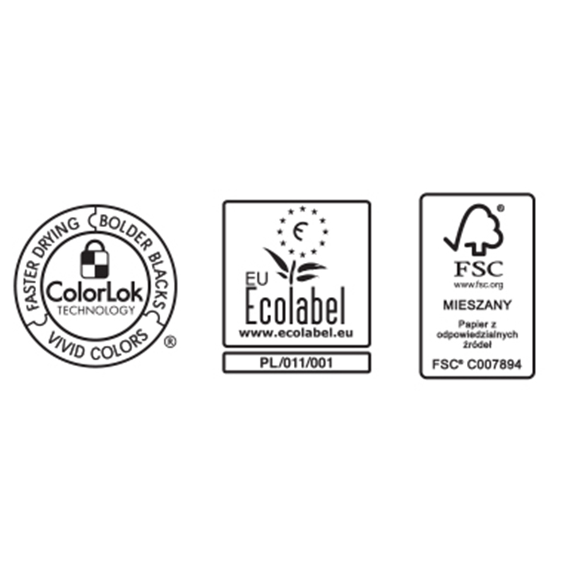 Produkt posiada certyfikaty FSC, ColorLok oraz Ecolabel, co potwierdza jego ekologiczne właściwości i zgodność z najwyższymi normami środowiskowymi. Wybierając ten papier, wspierasz zrównoważoną produkcję i ochronę zasobów naturalnych.