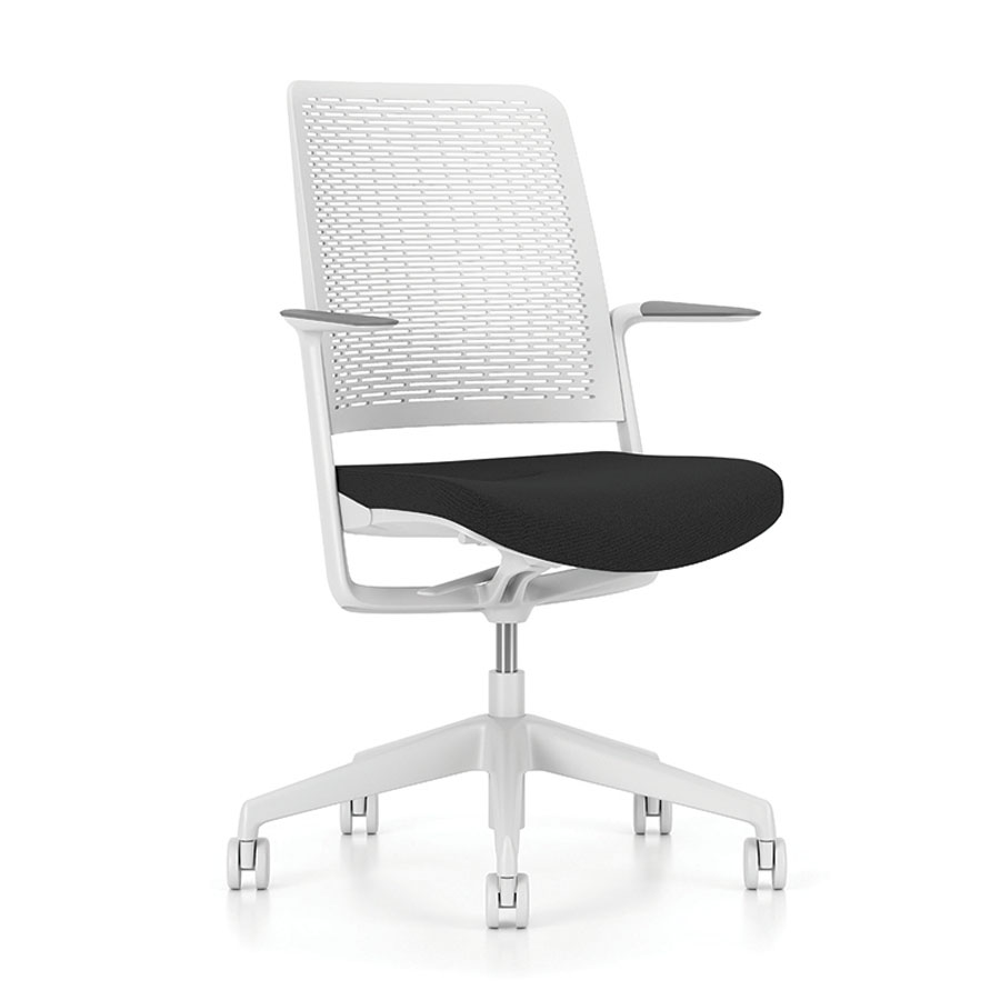 MULTIPRO wyróżnia się zdejmowanym wieszakiem na ubrania, który zwiększa wygodę użytkowania w przestrzeni biurowej. Mechanizm kołysania z możliwością blokady w trzech pozycjach pozwala na relaks w przerwach między obowiązkami. Stabilna, pięcioramienna nylonowa podstawa oraz kółka do powierzchni twardych zapewniają trwałość i mobilność fotela.