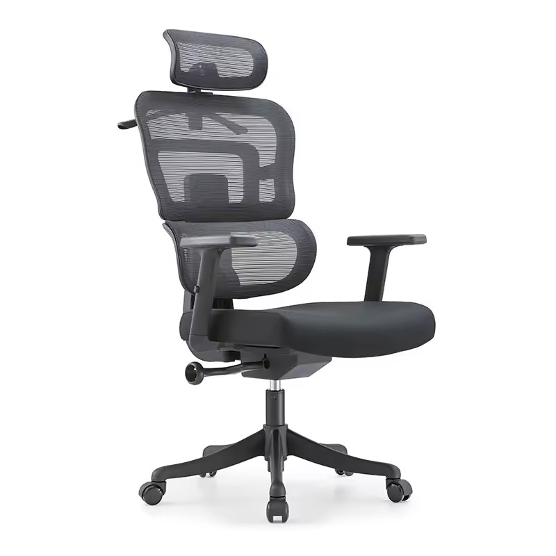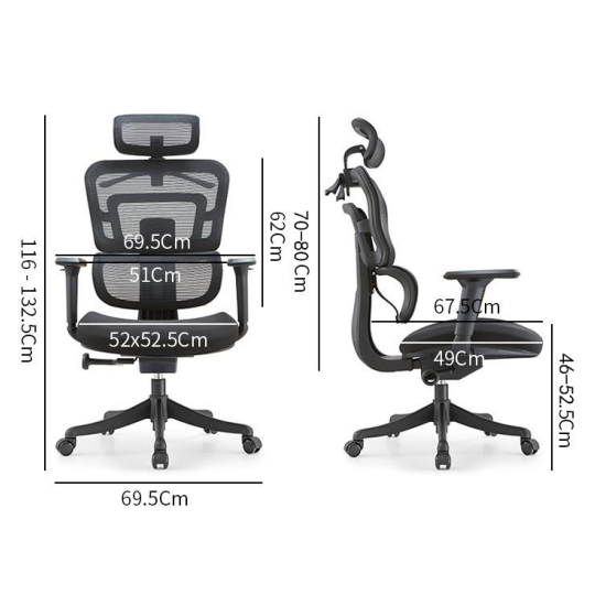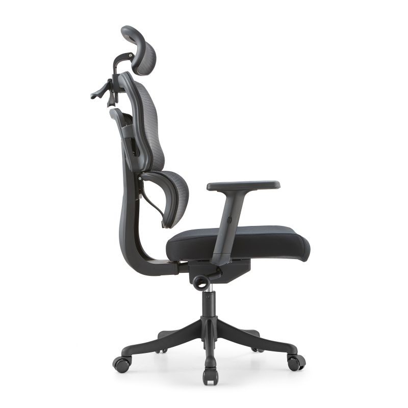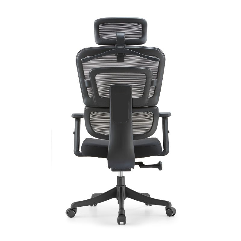 Fotel posiada szeroki zakres regulacji – wysokości siedziska, oparcia oraz zagłówka, co pozwala dostosować go do indywidualnych potrzeb użytkownika. Regulowane podłokietniki (góra-dół) oraz elastyczne podparcie lędźwiowe zapewniają odpowiednie wsparcie kręgosłupa.