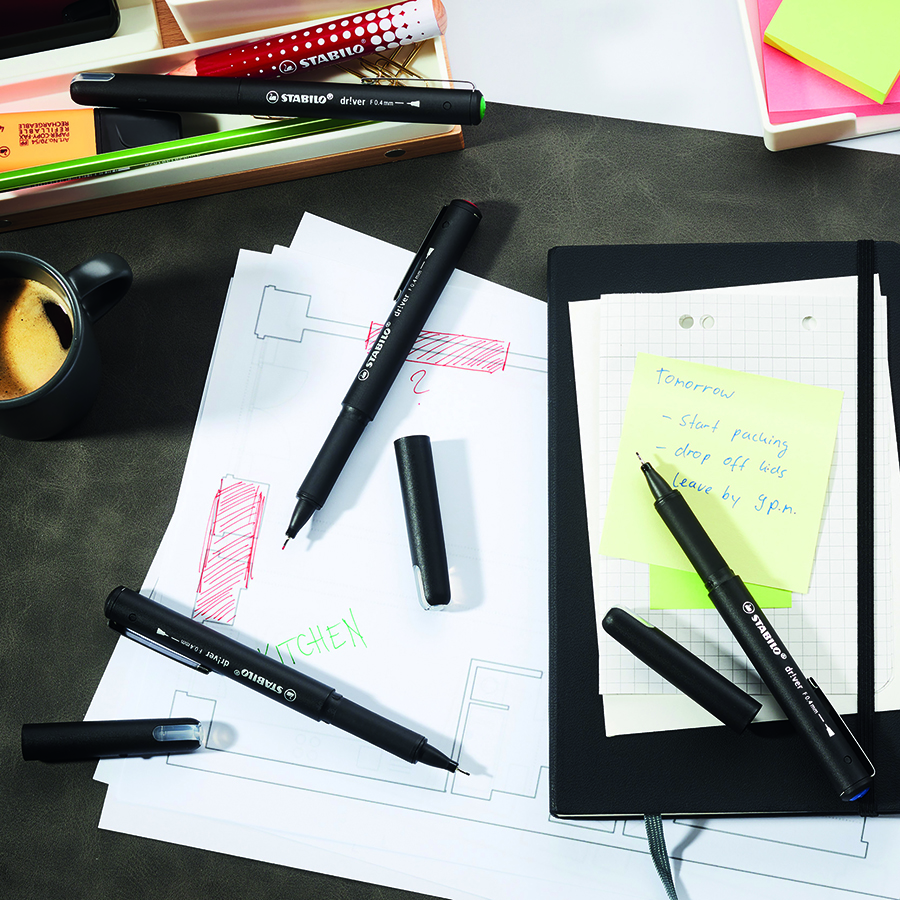 Najwyższej klasy cienkopis STABILO dr!ver zapewnia wyjątkową precyzję i komfort użytkowania. Doskonale sprawdzi się do pisania, rysowania, podkreślania oraz pracy z linijką. Wyposażony w mocną, metalową końcówkę, gwarantuje trwałość i niezawodność aż do całkowitego wyczerpania tuszu.