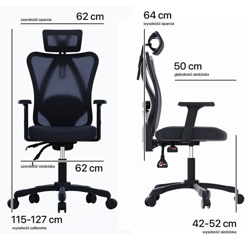 - Zawiera wyjmowane i regulowane poduszki lędźwiowe i karkowe