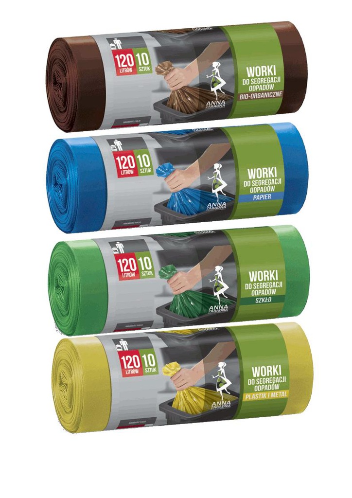 ANNA ZARADNA worki do segregacji odpadów zestaw 4x120L 10szt